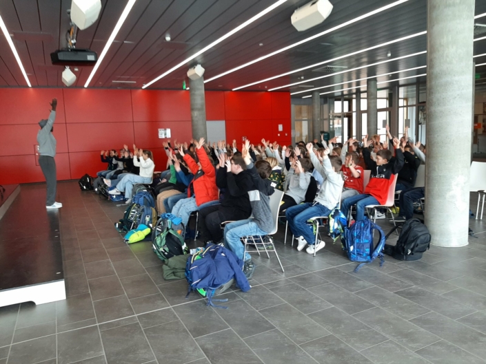 Viel zu schnell verging die Zeit mit Ibo und auch nach gut 90 Minuten konnten sich die Schülerinnen und Schüler kaum lösen von der lebendigen und aufregenden Darbietung des Autors. „Die Europäer haben die Uhr und die Afrikaner haben die Zeit“ – mit diesem Satz beschloss unser Gast die Veranstaltung und hinterließ mit Sicherheit bei nicht wenigen Teilnehmerinnen und Teilnehmern das Gefühl, dass dafür die Zeit einfach zu kurz war.