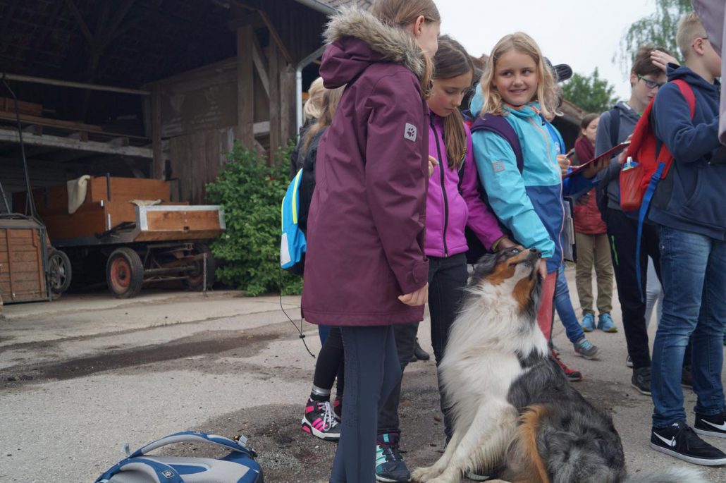 Als weitere Stationen wurden die Kaltblutfohlen besucht und die landwirtschaftlichen Maschinen besichtigt. Ein beeindruckender Anblick bot sich zudem, als Julia und Korbinian die Gatter des Pferdeauslaufes öffneten und die Pferde des Hofes freudig auf die weitläufige Koppel galoppierten. Während des anschließenden Frühstücks im Pferdestall gab es für Schüler und Lehrer zur Stärkung gekochte Eier der kurz zuvor gefütterten Hühner und selbstgemachte Fleischpflanzerl aus dem hofeigenen Bio-Rindfleisch. Zum Abschluss fuhr die Klasse zur Weide der schottischen Galloway-Rinder hinaus, wo sie die Kälber beobachten konnten und lehrreiche Informationen zur Haltung der Tiere erhielten.