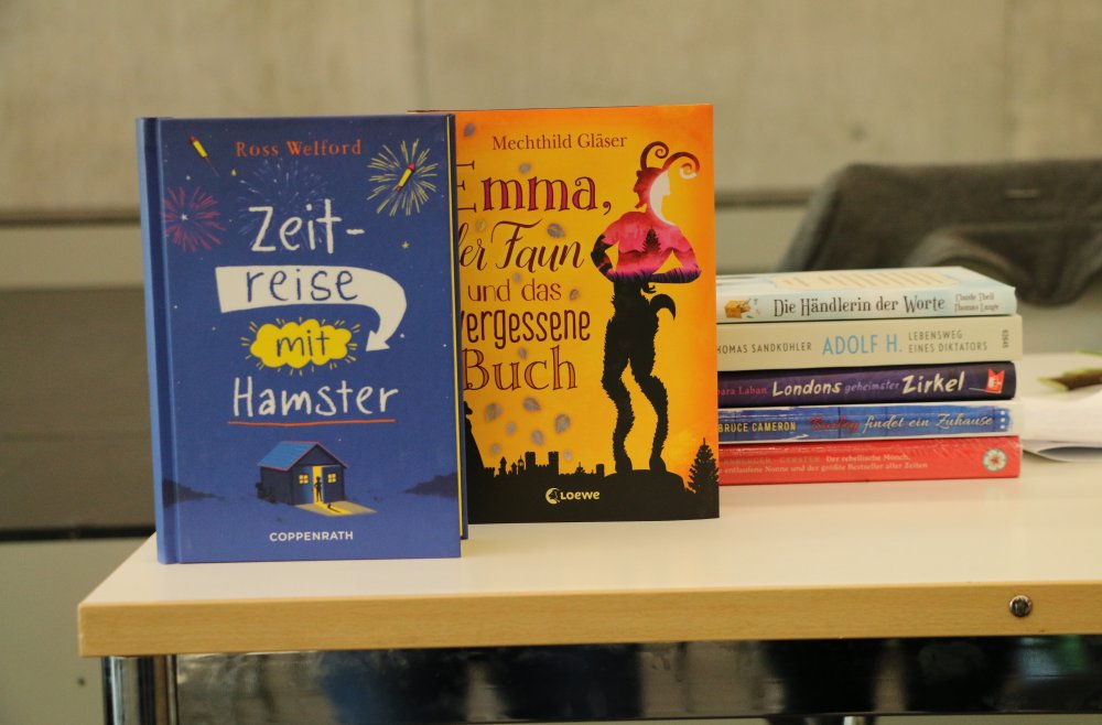 Nachdem bei der Buchvorstellung aktuelle Neuerscheinungen im Mittelpunkt standen, schenkten die Referendarinnen und Referendare des Studienseminars Deutsch den Unterstufenschülern im Anschluss in Form von je fünf Kurzlesungen ihre persönlichen Lieblingsgeschichten aus der klassischen Kinderliteratur. Gemeinsam mit ihrem Seminarlehrer Andreas Vogel hatten sie eine bunte Auswahl ihrer Lieblingstexte zusammengestellt, die sie nach einem Rotationssystem in den fünften und sechsten Klassen gut vorbereitet und sehr unterhaltsam vortrugen. Aus folgenden Titeln wurde dabei gelesen: Robinson Crusoe (Daniel Defoe), Level 4, die Stadt der Kinder (Andreas Schlüter), 4 1/2 Freunde und der rätselhafte Lehrerschwund (Joachim Friedrich), Jack Perdu und das Reich der Schatten (Katherine Marsh), Herr der Diebe (Cornelia Funke), Hallo Mister Gott, hier spricht Anna (Fynn), Rico, Oskar und die Tieferschatten (Andreas Steinhöfel). So manche Klasse fand dabei gleich Anregungen für ihre nächste Schullektüre.