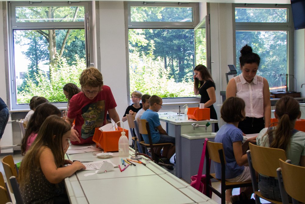 Den Auftakt bildeten eine Physik- und Chemie-Show, bei der jeweils spektakuläre Versuche durchgeführt wurden, welche die Fünftklässler in großes Staunen versetzten. Anschließend konnten die Kinder selbst Experimente durchführen, knifflige mathematische Aufgaben lösen und kleine Computer-Programme schreiben. So erhielten die Schüler Einblicke in die MINT-Fächer, wie Mathematik, Informatik, Naturwissensschaft (Biologie, Chemie, Physik) und Technik.