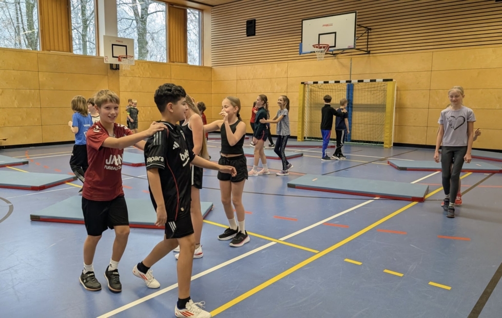 Nach einer gezielten Schulung übernahmen die Tutoren die Aufgabe, die 5. Klassen durch verschiedene kooperative Übungen zu führen, die Teamgeist, Vertrauen und Kommunikationsfähigkeit sowohl erfordern als auch fördern. Ziel war es, den Kindern frühzeitig Werkzeuge für ein respektvolles, unterstützendes Miteinander zu vermitteln – verbunden mit der Freude an gemeinsamer Bewegung.