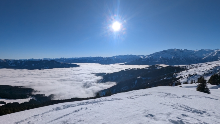 Am zweiten Tag ging es für die Gruppen eins und zwei auf Erkundungstour in das riesige Skigebiet von Saalbach Hinterglemm. Die Gruppen 3 und 4 konnten bereits eine blaue Piste auf der Bernalm bezwingen.Ein Highlight war an diesem Tag für die Alternativgruppe die Seilbahnfahrt auf die Schmittenhöhe, den Hausberg von Zell am See.