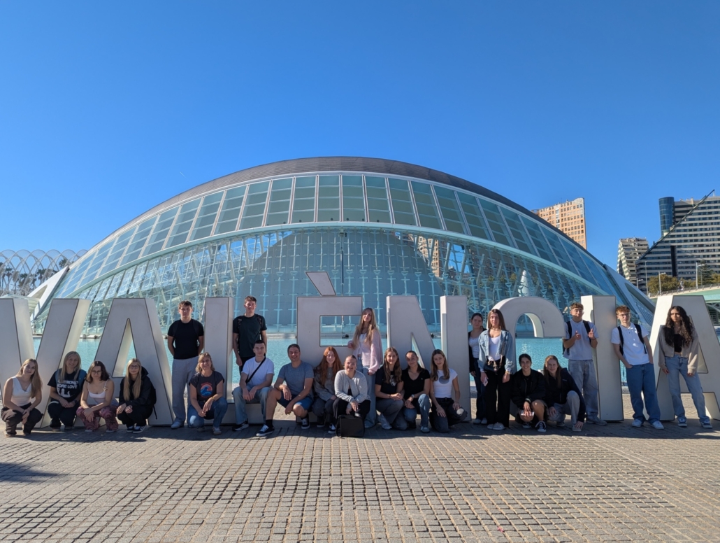 In Begleitung von Frau Adler und Herrn Schmidt machten sich am 25.10.2025 zwanzig Spanischschülerinnen und -schüler der 10. und 11. Klassen auf den Weg nach Valencia im Südwesten Spaniens, um dort der spanischen Sprache auch einmal außerhalb des Ludwigsgymnasiums zu begegnen.