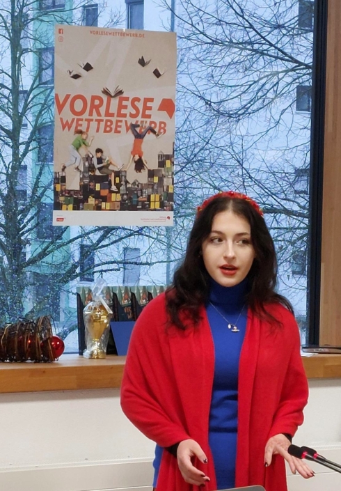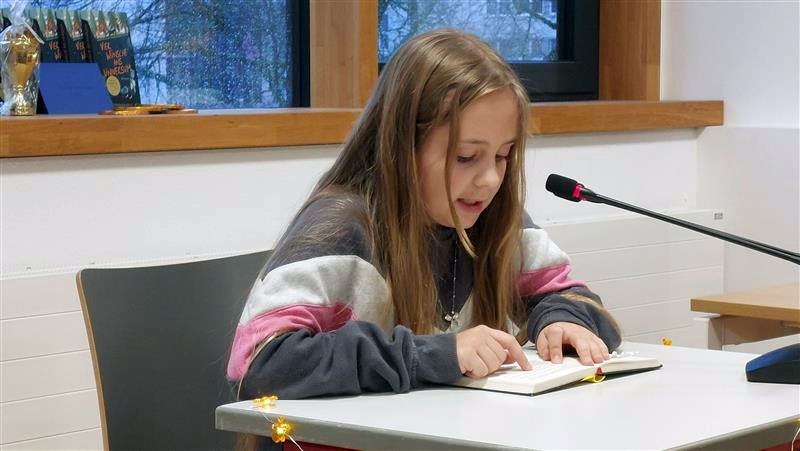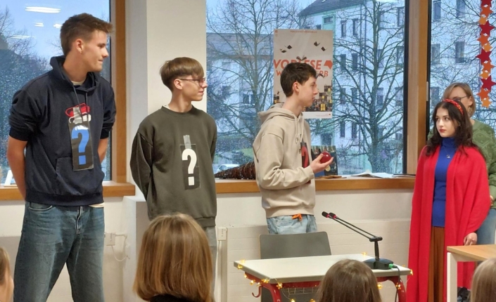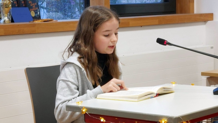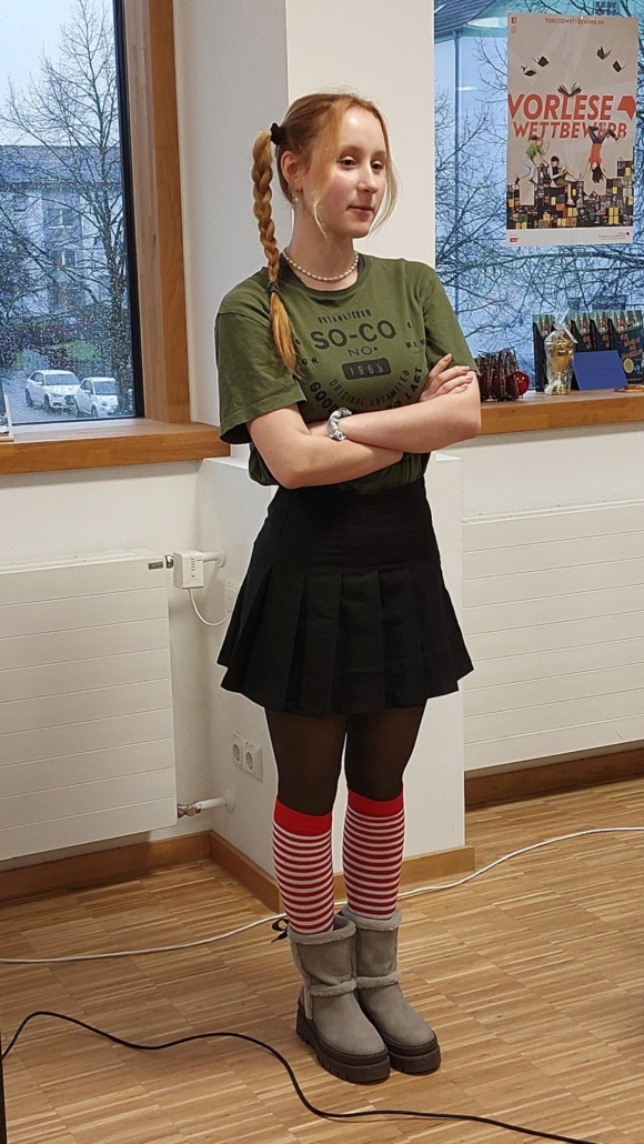 Nach einer spannenden Runde setzte sich schließlich Kalotta Kremer (6b) als  Gewinnerin gegen ihre Konkurrenz durch. Nicht nur durch einer Mischung aus sicherem Vortrag und emotionaler Tiefe überzeugte sie die Jury, sondern vor allem dadurch, dass sie die unterschiedlichen Figurenstimmen klar herausarbeitete und ihnen jeweils eine eigene Stimme verlieh. Unter großem Applaus wurde sie am Ende des Wettbewerbs von Schulleiterin Ricarda Krawczak zur Schulsiegerin gekürt. Und nun drückt das ganze Luggy Kalotta die Daumen für den Stadtentscheid im neuen Jahr!