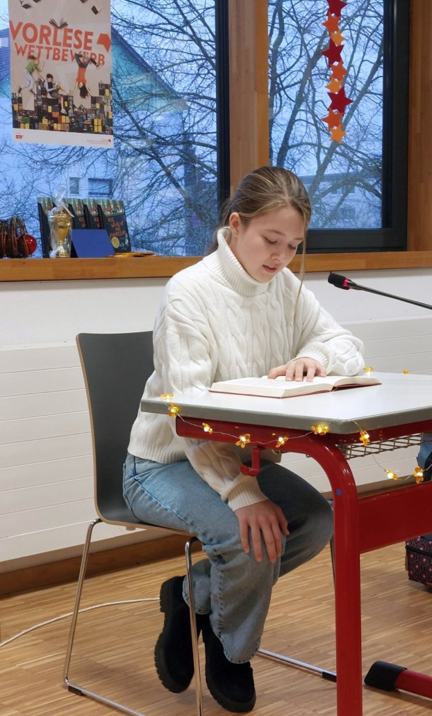 Manchmal braucht es nur eine Stimme, um einen ganzen Raum in Bewegung zu setzen. Eine Stimme, die aus gedruckten Zeichen Figuren, Stürme, Freundschaften und Abenteuer entfaltet! An diesem besonderen Tag schwebten solche Stimmen durch unsere Schule – leise, laut, fröhlich, spannend. Der Schulentscheid im Vorlesewettbewerb verwandelte auch in diesem Jahr wieder die Schulbibliothek in ein Klangtheater voller Geschichten.